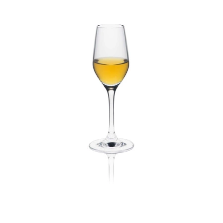 Kieliszek do likieru RATIO o pojemności 95 ml. Wykonany ze sprężystego, niezwykle twardego szkła kryształowego, dzięki czemu jest zdecydowanie bardziej odporny na odpryski i uderzenia. Wytrzymałość na odpryski zwiększona o 50% w stosunku do standardowego wykończenia rantu. Bezspoinowe przejście od czaszy do nóżki zapewnia ekstremalną odporność na pękanie.