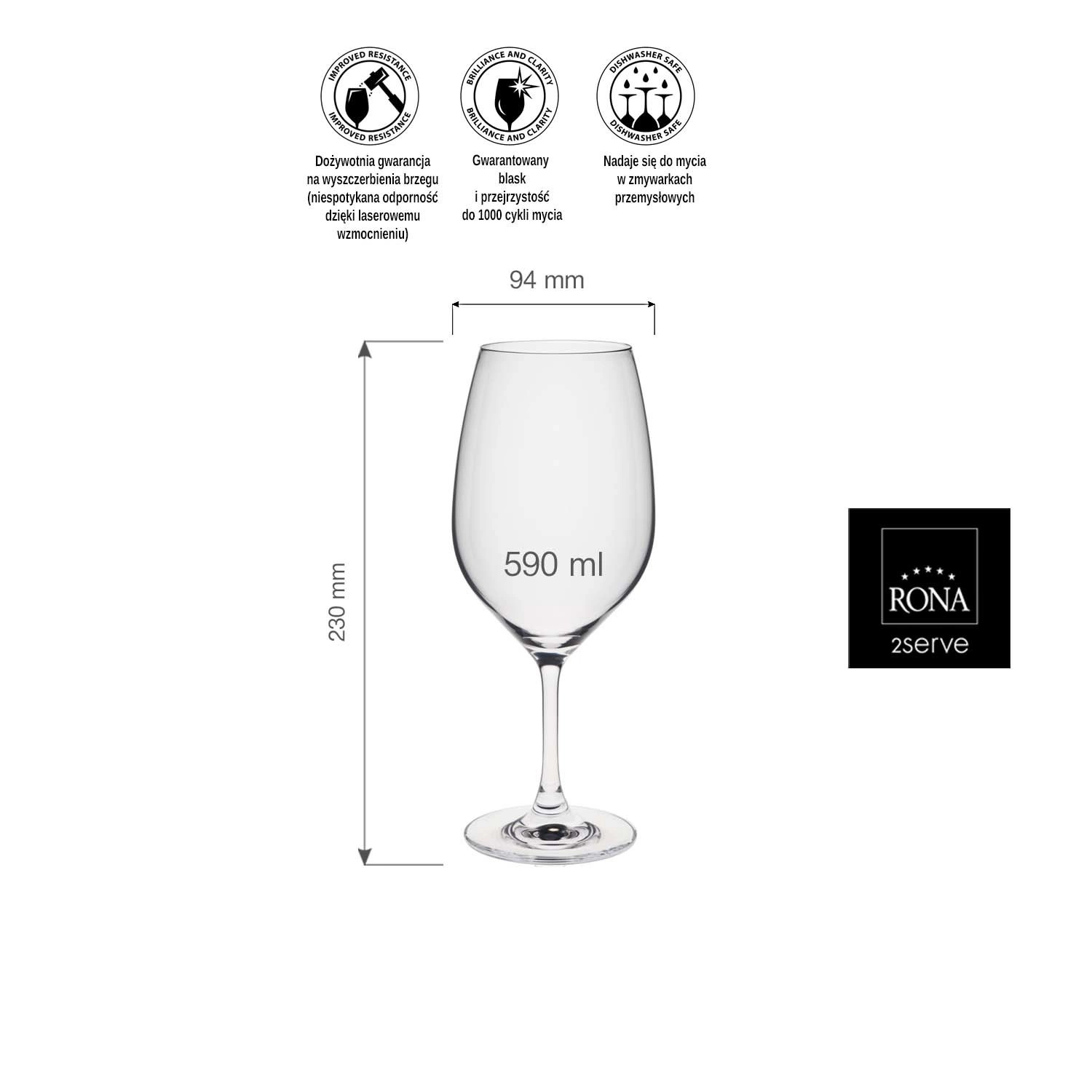Kieliszek do wina EDITION o pojemności 590 ml. Wykonany ze sprężystego, niezwykle twardego szkła kryształowego, dzięki czemu jest zdecydowanie bardziej odporny na odpryski i uderzenia. Wytrzymałość na odpryski zwiększona o 50% w stosunku do standardowego wykończenia rantu. Bezspoinowe przejście od czaszy do nóżki zapewnia ekstremalną odporność na pękanie.