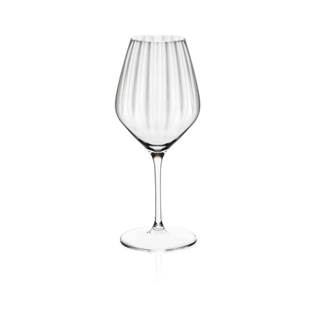 Kieliszek do wina z linii Favourite Optical marki Rona to idealne połączenie elegancji i nowoczesności. Jego smukły, opływowy kształt i delikatnie wydłużona nóżka nadają mu subtelnej gracji, a wzór pionowych smug dodaje współczesnego charakteru. Wykonany z wysokiej jakości bezołowiowego szkła kryształowego, charakteryzuje się wyjątkową lekkością i przejrzystością, zachowując blask nawet przy intensywnym użytkowaniu.