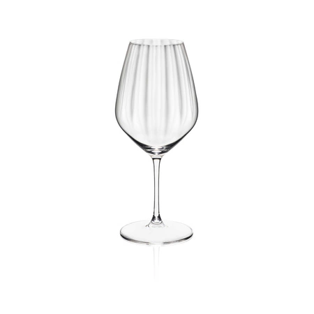 Kieliszek do wina z linii Favourite Optical marki Rona to idealne połączenie elegancji i nowoczesności. Jego smukły, opływowy kształt i delikatnie wydłużona nóżka nadają mu subtelnej gracji, a wzór pionowych smug dodaje współczesnego charakteru. Wykonany z wysokiej jakości bezołowiowego szkła kryształowego, charakteryzuje się wyjątkową lekkością i przejrzystością, zachowując blask nawet przy intensywnym użytkowaniu.