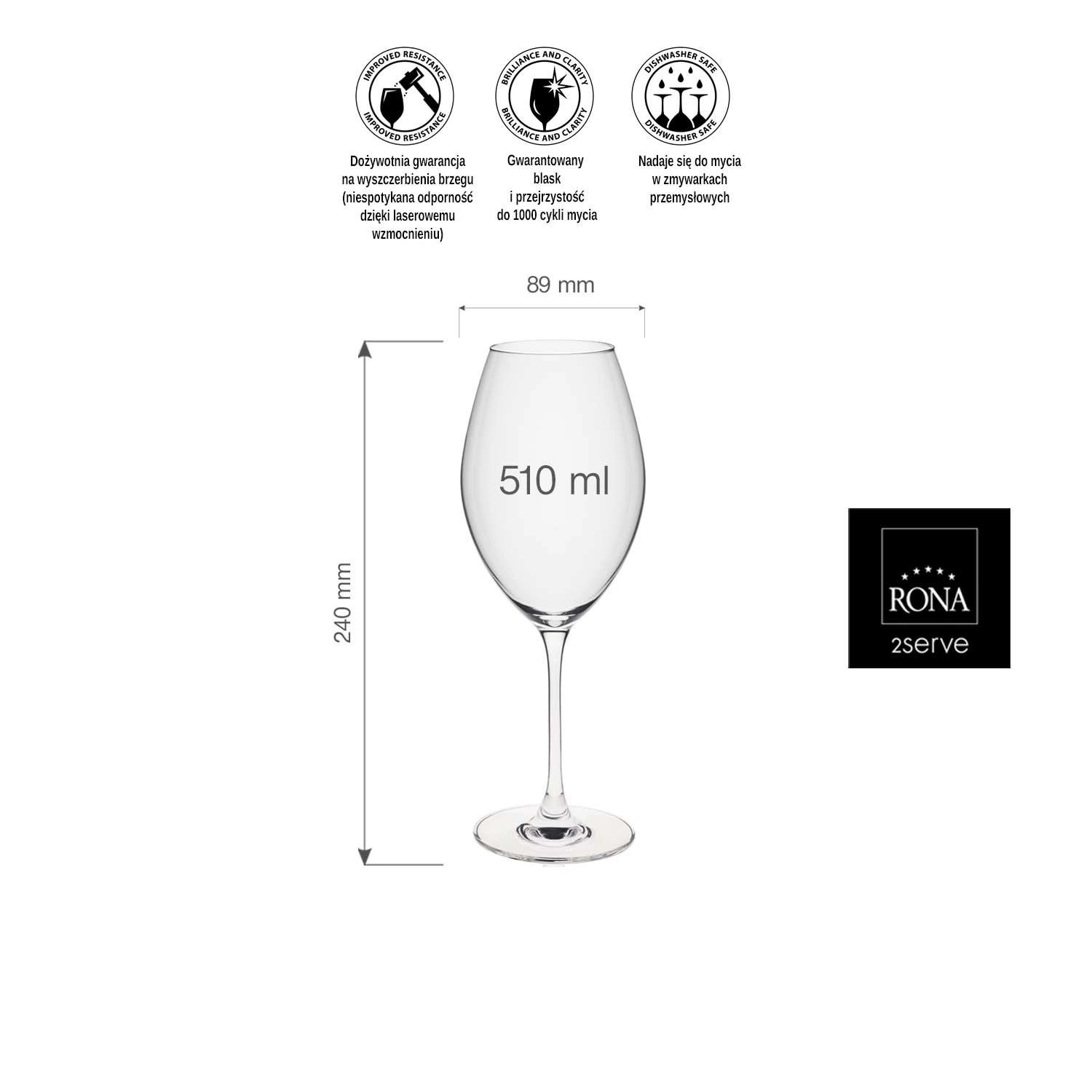 Szkło zaprojektowane tak, aby pasowało do większości powszechnie używanych koszy do mycia, transportu i przechowywania naczyń. Gwarantowany trwały blask i przejrzystość po 1000 cyklach mycia w zmywarkach. Materiał, z którego wykonano kieliszki wykazuje odporność na działanie powszechnie stosowanych detergentów, jak również na szok termiczny dla różnicy temperatur 65°C. Dzięki płaskim stopkom kieliszki nie zatrzymują wody po myciu naczyń.