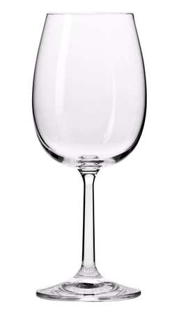 Każdy kieliszek posiada smukłą sylwetkę, wysoką nóżkę połączoną z solidną stopką oraz czarkę delikatnie zwężającą się ku górze, co sprzyja prawidłowemu uwalnianiu aromatów. Duża pojemność (350 ml) i szeroka czarka zapewniają odpowiedni kontakt wina z powietrzem, umożliwiając jego pełniejszą dekantację, a w efekcie – delikatniejszy, gładszy smak.