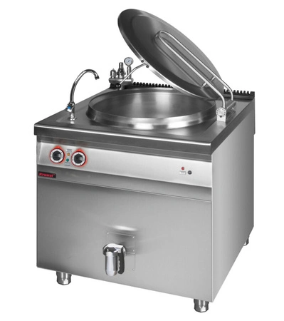 - Pojemność 200 litrów – umożliwia przygotowanie dużych ilości zup, sosów i innych potraw płynnych, idealnie sprawdzając się w gastronomii zbiorowej, stołówkach czy cateringu.