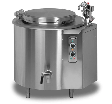 Kocioł wyposażony jest w regulator temperatury, który umożliwia płynną regulację zakresu temperatury od 30 do 100 °C, co pozwala na precyzyjne dopasowanie warunków gotowania do różnorodnych procesów kulinarnych. Trzystopniowa regulacja mocy grzewczej umożliwia optymalizację zużycia energii, jednocześnie zapewniając efektywne podgrzewanie i gotowanie. Elektroniczny układ kontroli poziomu wody w ogrzewaczu zapewnia bezpieczeństwo użytkowania, zapobiegając przegrzaniu grzałek elektrycznych, a ogranicznik temperatury chroni urządzenie przed nadmiernym wzrostem temperatury, co zabezpiecza przed uszkodzeniami.
