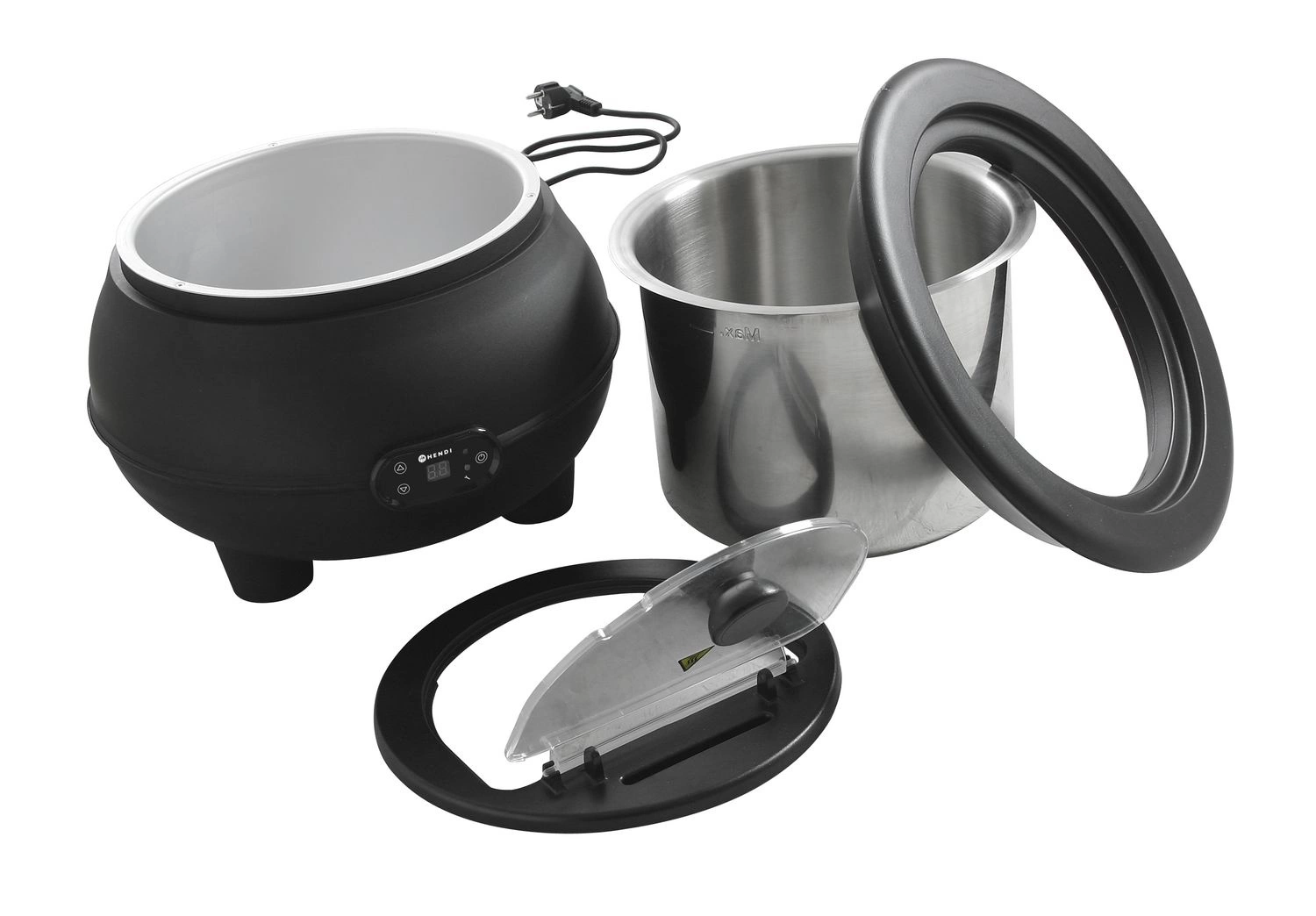 Elektryczny kociołek do zup SAVE ENERGY z izolacją termiczną zmniejszającą zużycie energii oraz utrzymującą niską temperaturę obudowy zewnętrznej. Zbiornik na wodę jest wykonany z aluminium (dla lepszej wymiany ciepła), natomiast wkład na zupę wykonany jest ze stali nierdzewnej  18/8. Dodatkowym atutem urządzenia jest pokrywa wykonana z twardego przeźroczystego poliwęglanu (pokrywa posiada izolowany uchwyt oraz wycięcie na chochlę).