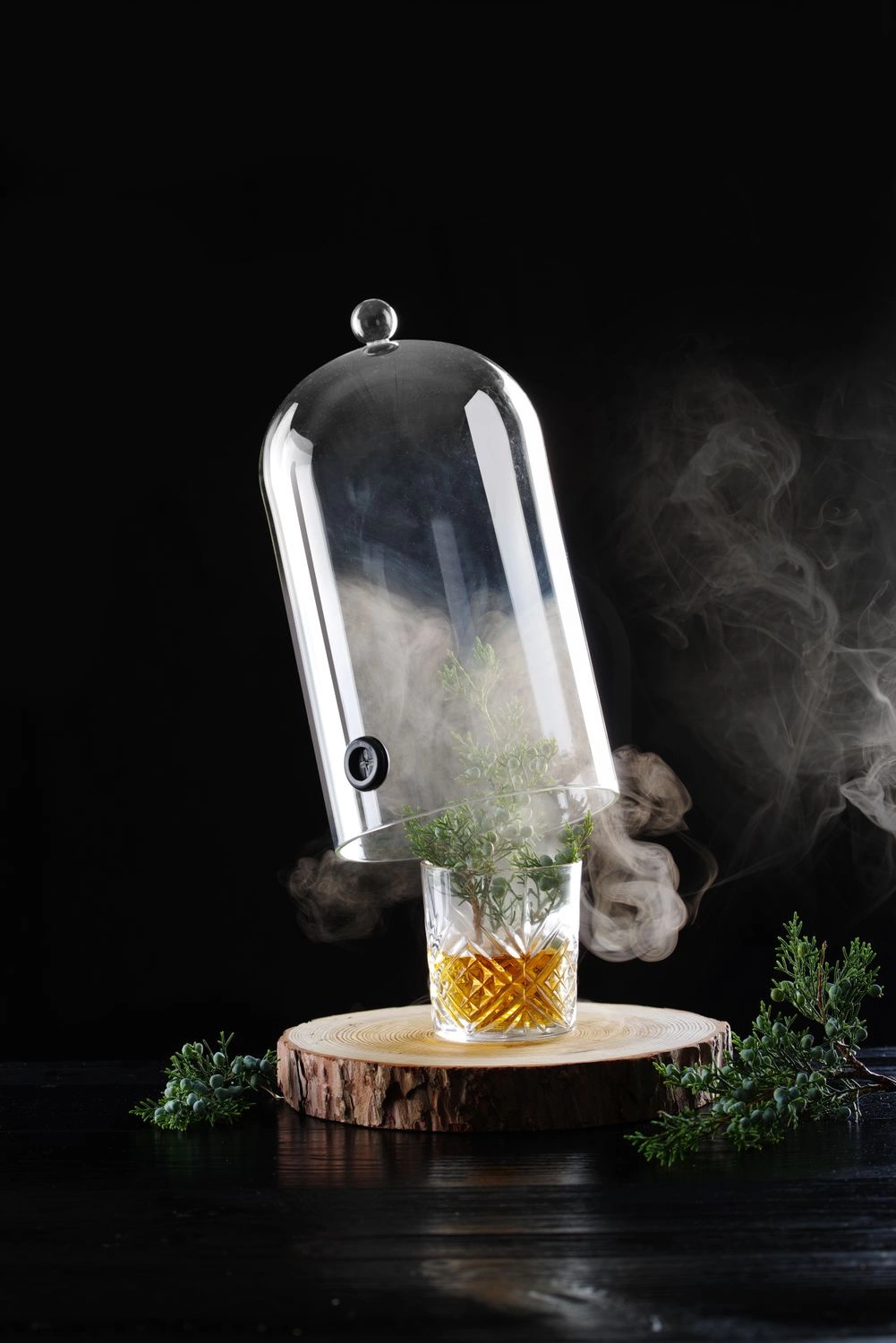 Kopułka szklana do pistoletów wędzarniczych o średnicy 13 cm, wykonana ze szkła borokrzemianowego. Idealna do użycia z pistoletem wędzarniczym, gdyż wyposażona jest w silikonowy otwór do wężyka doprowadzającego dym. Umożliwia serwowanie potraw w spektakularny sposób.