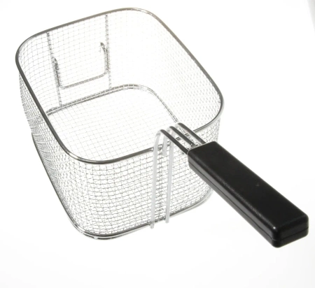 Kosz został wykonany z trwałych materiałów, które nie odkształcają się pod wpływem wysokich temperatur. Długi uchwyt pozwala na wygodne i bezpieczne operowanie koszem, a odpowiednio zaprojektowany kształt umożliwia swobodny przepływ oleju i równomierne smażenie produktów. Dzięki kompaktowym wymiarom łatwo go przechowywać i myć po zakończonej pracy.