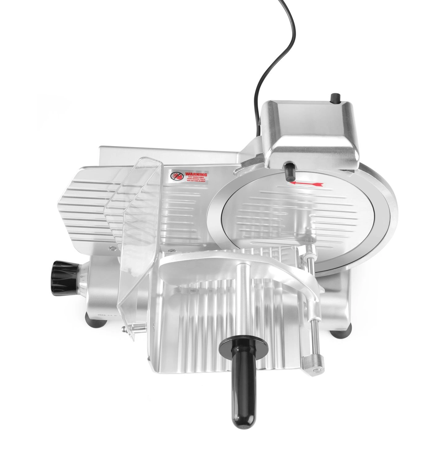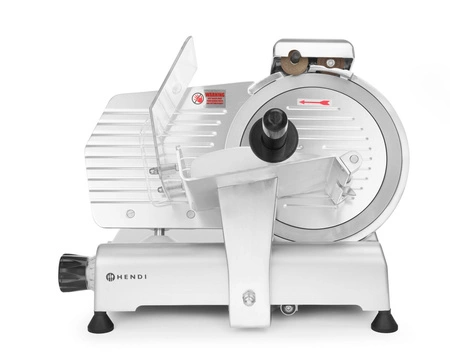 Krajalnica HENDI Kitchen Line 250 wykonana została z aluminium, co zapewnia jej odporność na korozję oraz łatwość utrzymania czystości. Gładka powierzchnia i odkręcana prowadnica znacząco ułatwiają czyszczenie po zakończonej pracy. Nóż ze stali nierdzewnej o dużej średnicy pozwala na szybkie i precyzyjne cięcie wędlin oraz mięsa, a wbudowana ostrzałka umożliwia zachowanie optymalnej ostrości przez długi czas użytkowania. Oddzielne, czytelnie oznaczone przyciski włączania i wyłączania oraz dodatkowa osłona na nóż podnoszą bezpieczeństwo użytkowania. Chłodzony powietrzem silnik sprawia, że urządzenie nadaje się do intensywnej pracy, bez obaw o przegrzanie.