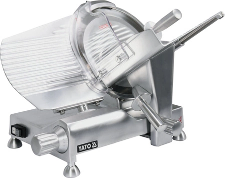 Wbudowana ostrzałka pół-automatyczna pozwala na szybkie naostrzenie tarczy tnącej bez konieczności jej demontażu, co przyczynia się do efektywności użytkowania maszyny. Bezpieczeństwo użytkowania zostało podniesione na wyższy poziom dzięki bryzgoszczelnemu włącznikowi, który zabezpiecza przed porażeniem prądem zarówno podczas pracy, jak i czyszczenia urządzenia. Dodatkowa osłona zabezpieczająca tarczę tnącą oraz specjalna przezroczysta osłona nad strefą cięcia minimalizują ryzyko skaleczenia się podczas użytkowania. Stabilność urządzenia podczas pracy jest zapewniona dzięki specjalnym nóżkom antypoślizgowym, co zwiększa bezpieczeństwo i precyzję podczas korzystania z krajalnicy YATO. To zaawansowane urządzenie nie tylko ułatwia pracę, ale również dba o bezpieczeństwo i higienę w profesjonalnym środowisku kulinarnym.