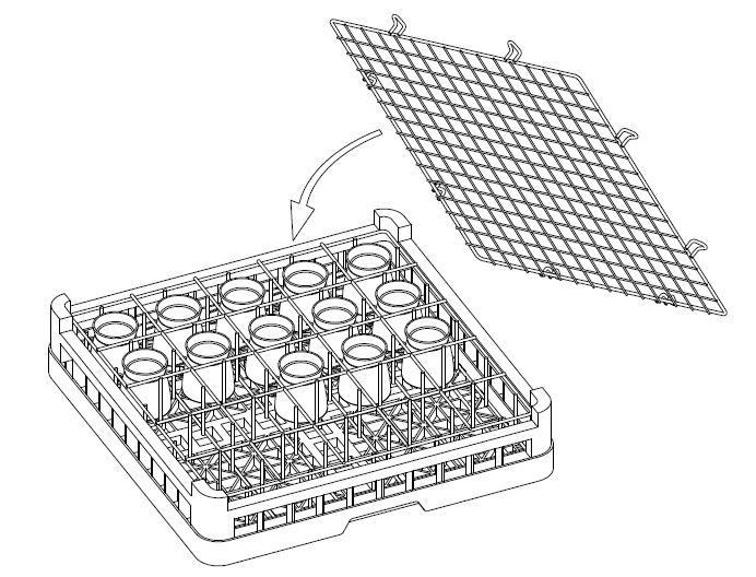 • Ochrona przed wypadaniem naczyń – kratka skutecznie zabezpiecza delikatne szkło, porcelanę czy naczynia ze stali nierdzewnej przed przesuwaniem i uszkodzeniem w trakcie pracy urządzenia lub przenoszenia kosza.