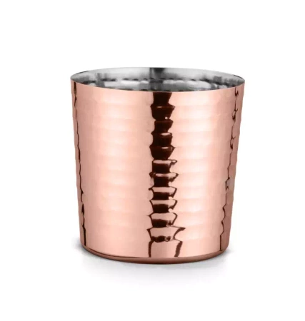 Kubek serwingowy w kolorze miedzi młotkowanej to praktyczne i eleganckie naczynie, które sprawdzi się zarówno w domowej kuchni, jak i w profesjonalnej gastronomii. Charakterystyczna młotkowana powierzchnia oraz wykonanie ze stali nierdzewnej podkreślają jego nowoczesny styl i trwałość. Idealny do serwowania napojów, koktajli lub jako oryginalny pojemnik na przekąski.
