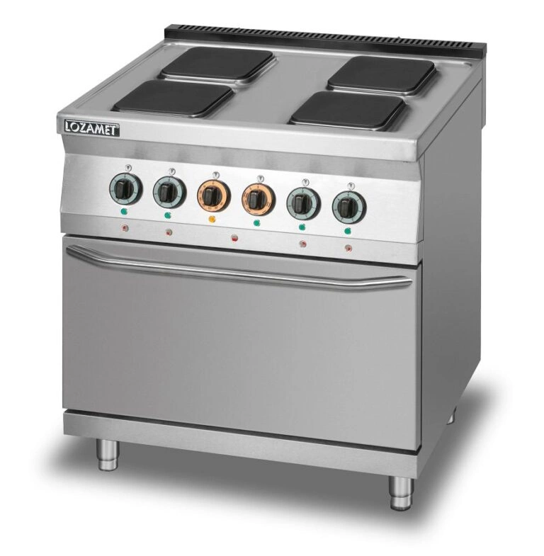 Kuchnia gastronomiczna elektryczna 4 pola kwadratowe z piekarnikiem elektrycznym z termoobiegiem GN 2/1 LOZAMET L900.KE4 PET