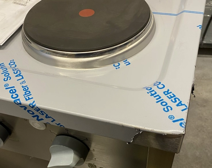 Płyty grzewcze posiadają drobne rysy- z tyłu po prawej stronie widoczna jest wada narożnika.