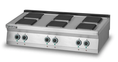 Kuchnia gastronomiczna elektryczna 6-płytowa nastawna, pola grzewcze kwadratowe 120x70x28 cm, 14,4 kW | LOZAMET L700.KE6