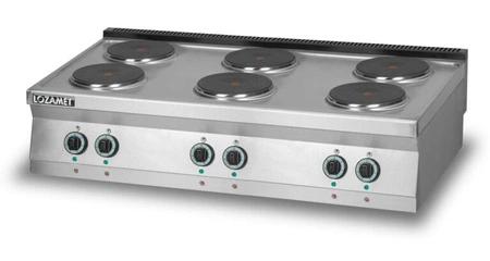 Kuchnia gastronomiczna elektryczna 6-płytowa nastawna, pola grzewcze okrągłe, 120x70x28 cm, 15,6 kW LOZAMET L700.KEO6