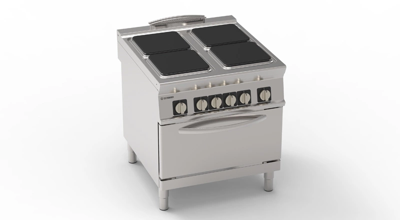 Kuchnia gastronomiczna elektryczna z piekarnikiem elektrycznym, 4 pola kwadratowe 30x30 cm, 16 + 5.3 kW | TECNOINOX 316037