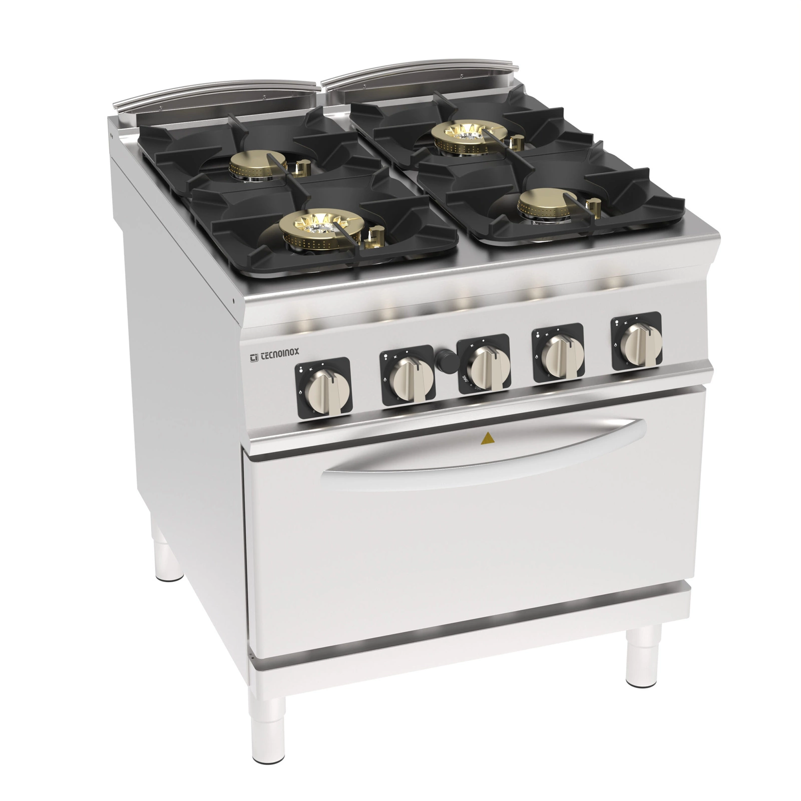 Kuchnia gastronomiczna gazowa 4-palnikowa z piekarnikiem gazowym, wersja Top Power, 42 + 7 kW | TECNOINOX 313275