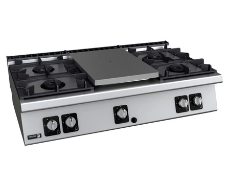 • Moc palników: 3 x 5,75 kW oraz 2 x 8 kW – zróżnicowana moc palników pozwala na jednoczesne przygotowanie różnych potraw.
