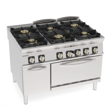 Kuchnia gastronomiczna TECNOINOX 313286 to profesjonalne urządzenie gazowe z linii T-90, stworzone z myślą o intensywnym użytkowaniu w dużych restauracjach, hotelach oraz punktach gastronomicznych. Sześć palników o wysokiej mocy oraz pojemny piekarnik gazowy GN 2/1 pozwalają na przygotowanie wielu potraw jednocześnie.