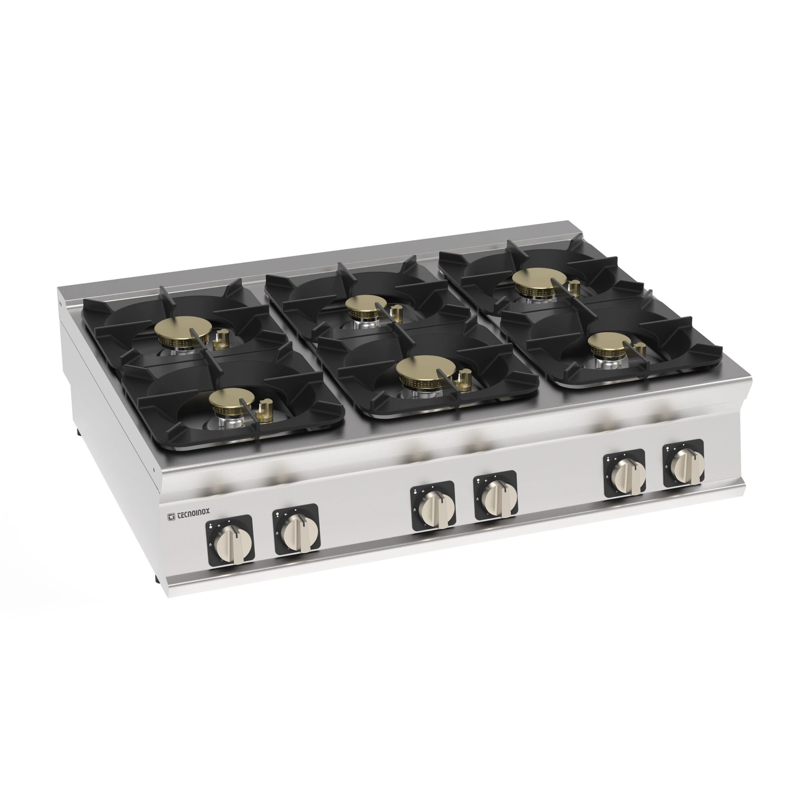 Kuchnia gastronomiczna gazowa 6-palnikowa z żeliwnym rusztem, nastawna, 80 cm, 48 kW | TECNOINOX 313280