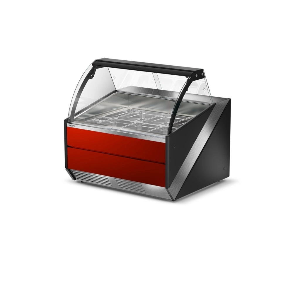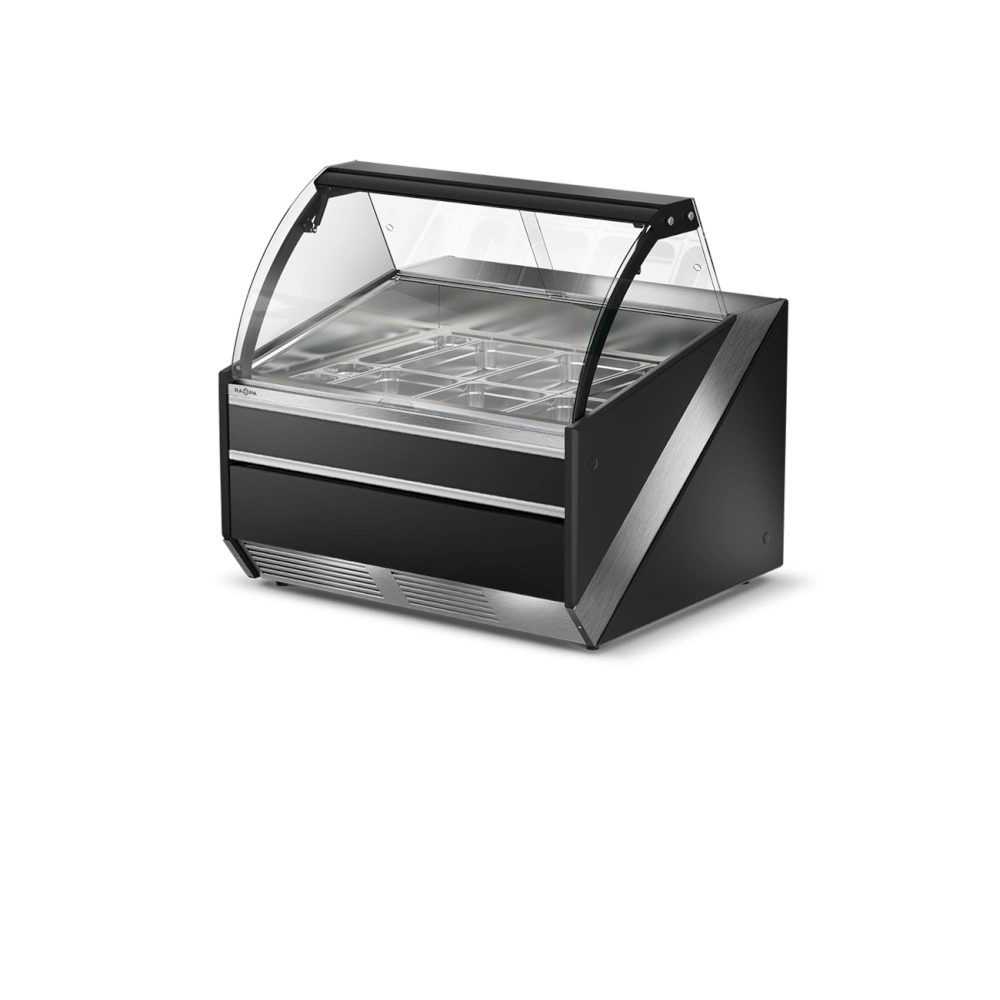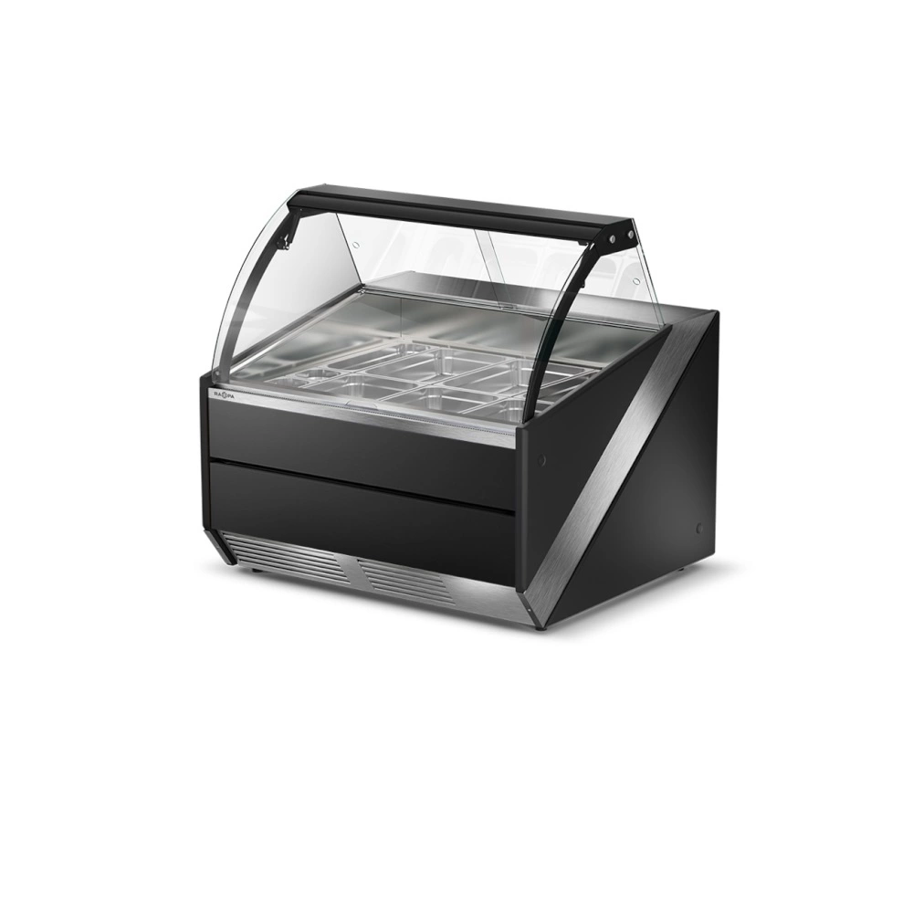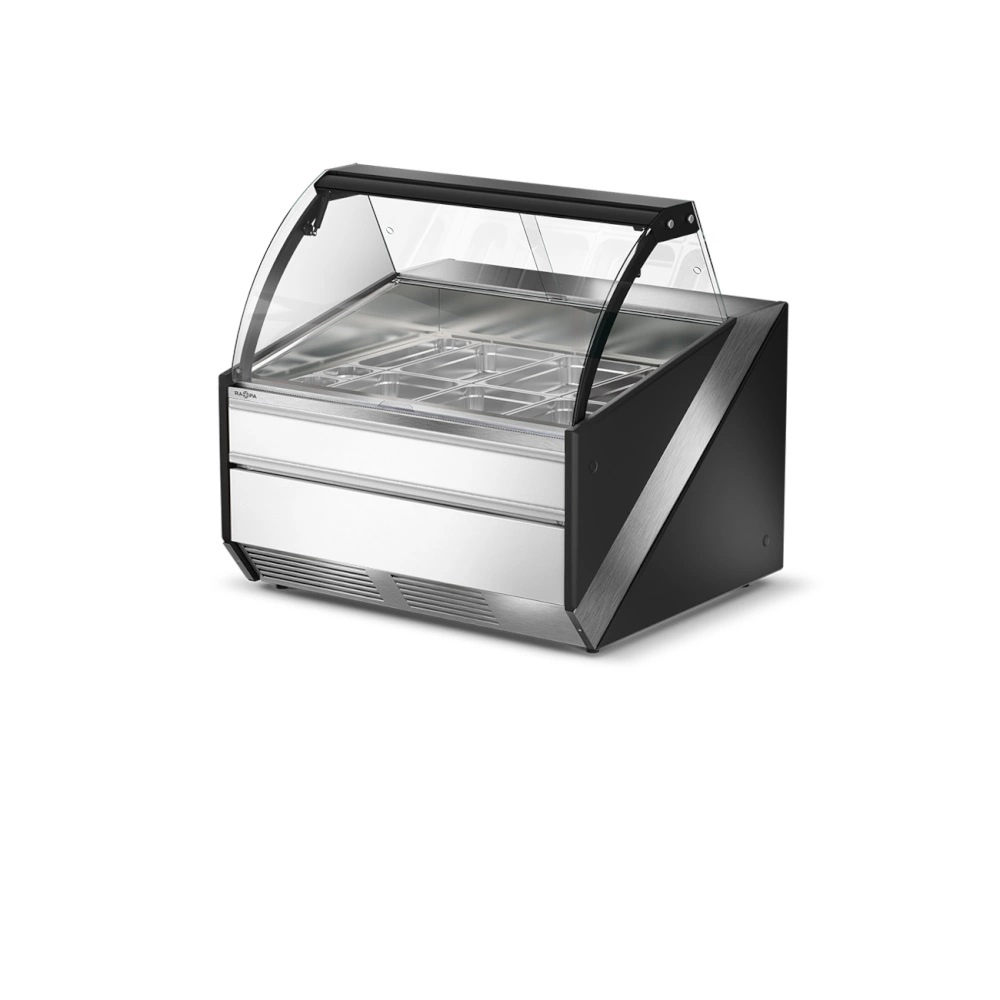 Lada grzewcza z szybą czołową giętą, otwieraną do góry L-S/DHBM o wymiarze 134.5x120x121 cm. Dostępna w wersji z półką frontową, odbojnikami nierdzewnymi lub w formie bez dodatków. Lada w stylistyce inoXframe z nierdzewnym blatem, bokami z tworzywa i izolacją poliuretanową. Lady grzewcze można łączyć w ciągi lub zestawiać je z innymi urządzeniami z linii SiX. W standardzie urządzenie jest wyposażone w 3 szt. prowadnic, a maksymalnie w ekspozycji można umieścić 6 sztuk, które można dokupić z oferty akcesoriów. Dzięki temu można w łatwy sposób dopasowywać wnętrze do bieżących potrzeb przesuwając prowadnice i układając pojemniki w różnych konfiguracjach.
