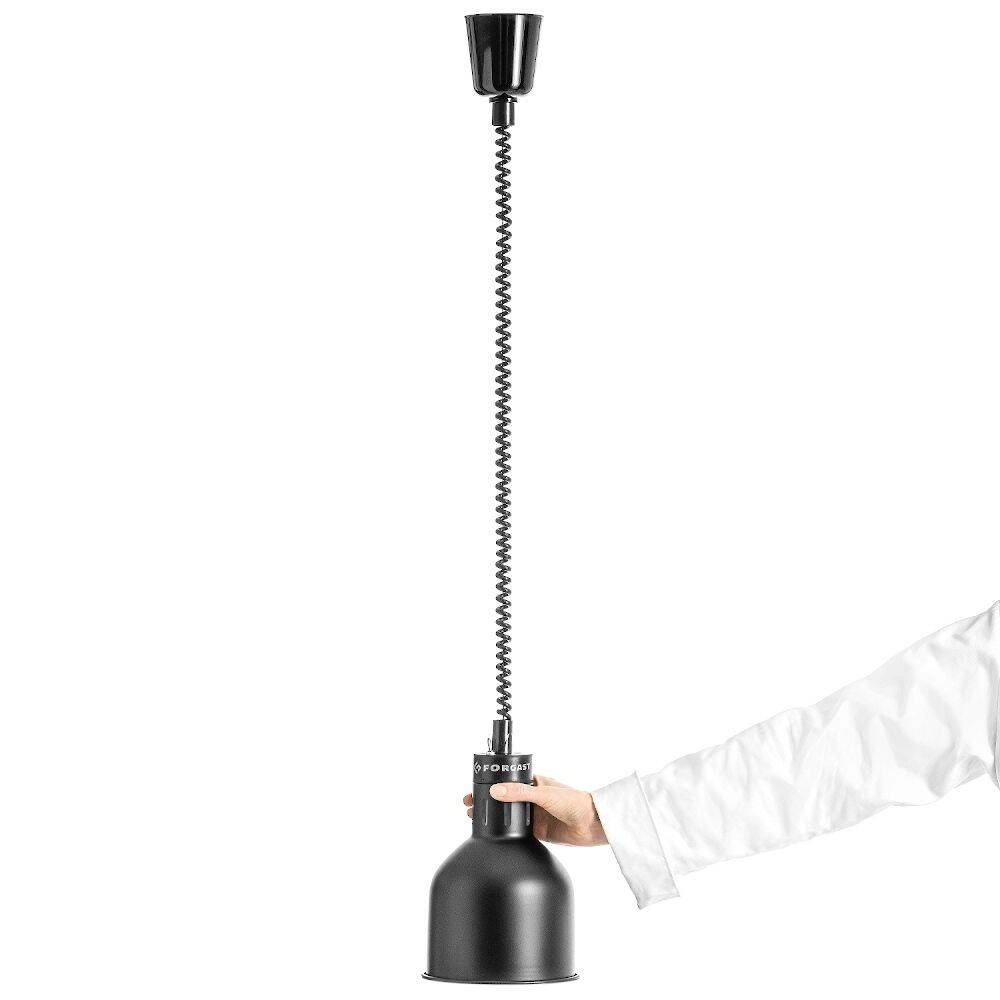 Lampa grzewcza do potraw czarna - typ A FORGAST FG03341 to nowoczesne urządzenie służące do utrzymywania temperatury przygotowanych dań. Charakteryzuje się eleganckim, czarnym wykończeniem oraz możliwością regulacji wysokości. Idealnie sprawdzi się w profesjonalnych kuchniach, restauracjach, przy obsłudze cateringowej oraz w domach weselnych, gdzie kluczowe jest utrzymanie właściwej temperatury serwowanych potraw.