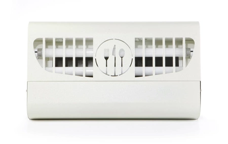 Lampa owadobójcza o zasięgu działania do 100 m2. W zestawie znajdują się dwie świetlówki 15 W. Dopuszczona do użytku w kuchni. Taśma klejąca do łapania owadów w zestawie (wymiar arkusza taśmy 39,5×23 cm).