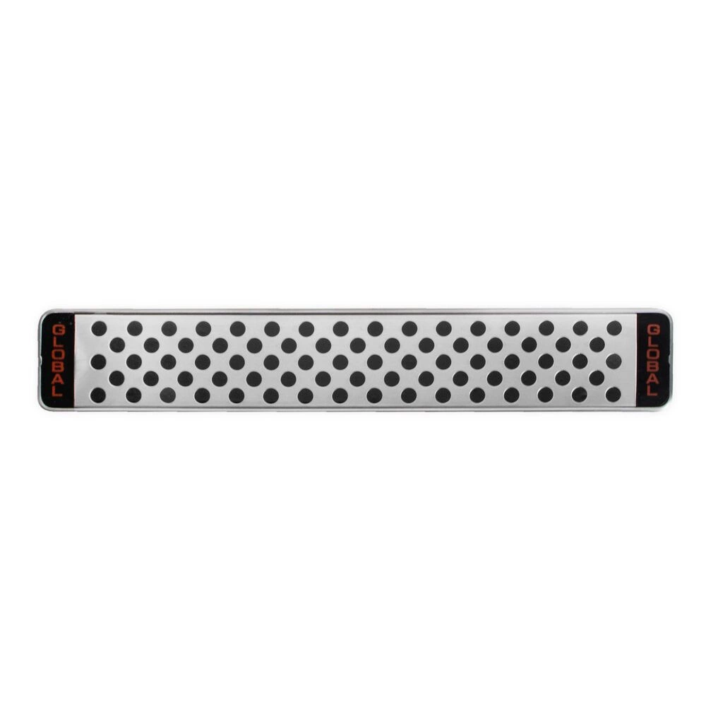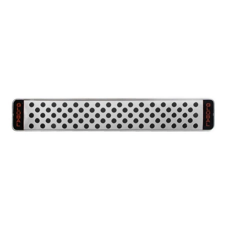 Listwa magnetyczna G-4231 marki GLOBAL. Wysokiej jakości, solidna listwa magnetyczna, która pozwala przechowywać stalowe noże kuchenne w zasięgu ręki. Idealne rozwiązanie dla osób, które dbają o higienę i potrzebują w kuchni więcej przestrzeni do pracy. Niezwykle silny magnes sprawia, że nawet ciężkie narzędzia mocno trzymają się listwy i zawsze pozostają na bezpiecznej wysokości. Oryginalny design pięknie się komponuje z rękojeściami noży marki Global, dzięki czemu listwa jest jednocześnie prawdziwą ozdobą nowoczesnych wnętrz.