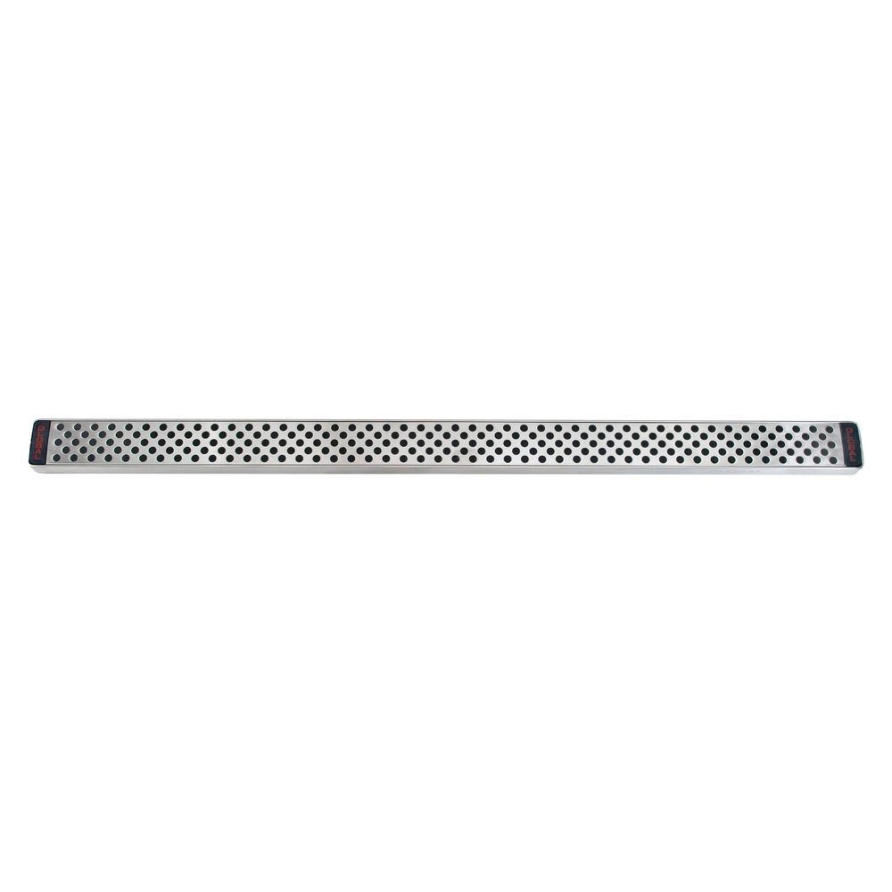 Listwa magnetyczna G-4281 marki GLOBAL. Wysokiej jakości, solidna listwa magnetyczna, która pozwala przechowywać stalowe noże kuchenne w zasięgu ręki. Idealne rozwiązanie dla osób, które dbają o higienę i potrzebują w kuchni więcej przestrzeni do pracy. Niezwykle silny magnes sprawia, że nawet ciężkie narzędzia mocno trzymają się listwy i zawsze pozostają na bezpiecznej wysokości. Oryginalny design pięknie się komponuje z rękojeściami noży marki Global, dzięki czemu listwa jest jednocześnie prawdziwą ozdobą nowoczesnych wnętrz.