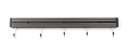 Listwa magnetyczna do zawieszania noży. Wykonana z polipropylenu. Dwa magnetyczne paski. 5 haczyków.