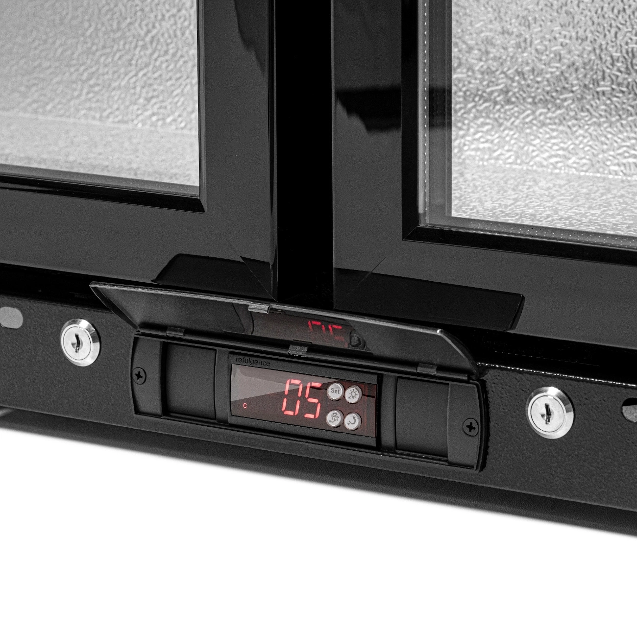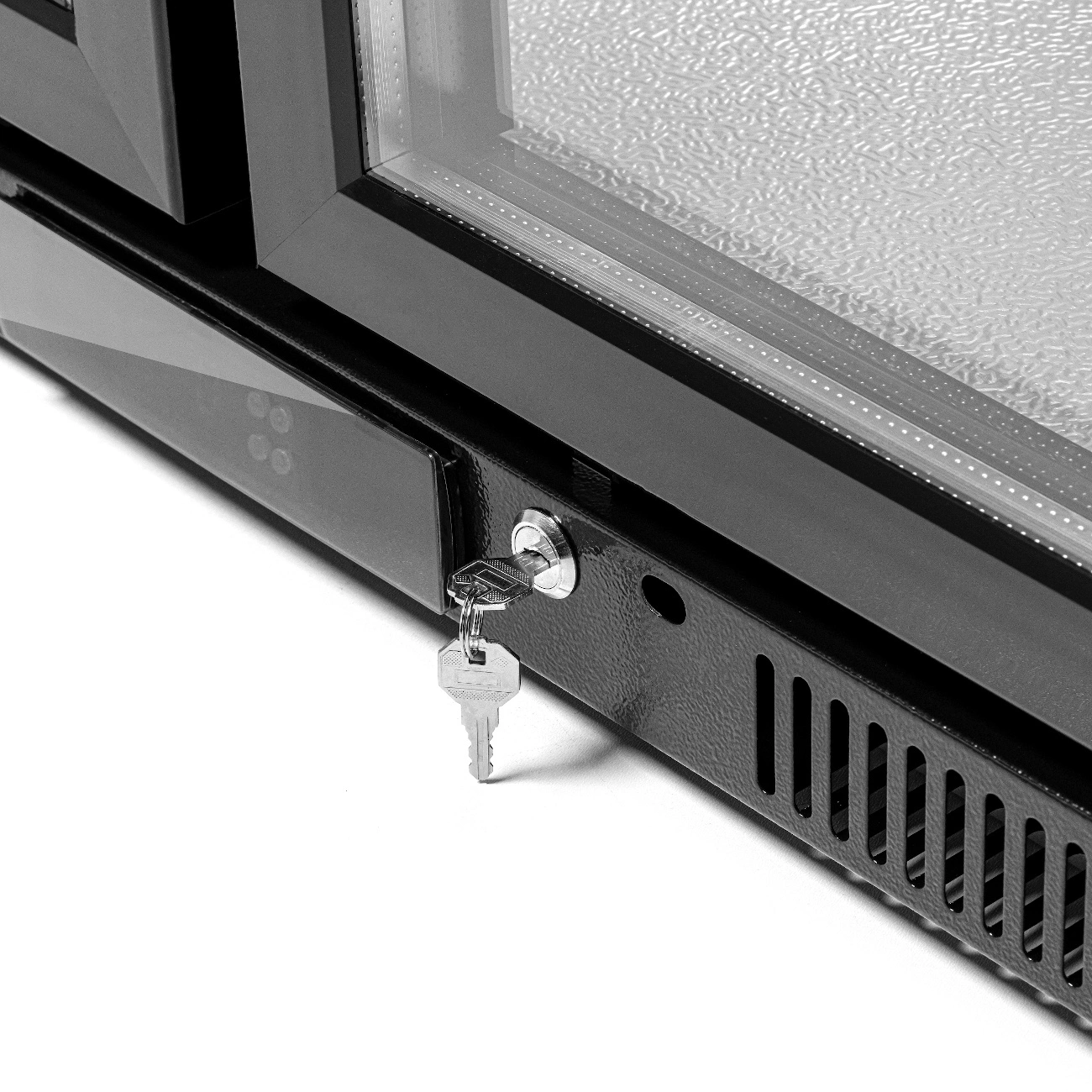 Opis Lodówka barowa na napoje 2-drzwiowa, drzwi otwierane 208 l FORGAST FG07712Lodówka barowa na napoje 2-drzwiowa, drwi otwierane 208 l FORGAST FG07712 to profesjonalna chłodziarka przeznaczona do intensywnego użytkowania w lokalach gastronomicznych, takich jak bary, restauracje czy hotele. Jej cechami wyróżniającymi są dwuskrzydłowe drzwi z podwójną szybą, pojemność 208 litrów oraz solidna, czarna obudowa ze stali, która świetnie prezentuje się w nowoczesnych wnętrzach. Urządzenie doskonale sprawdzi się tam, gdzie liczy się niezawodność, wygoda obsługi oraz estetyka ekspozycji napojów. Najważniejsze cechy i funkcjonalność- Podwójne, przeszklone drzwi z zamkiem – drzwi wykonane są z hartowanego szkła, co zwiększa bezpieczeństwo i wytrzymałość, a zamek umożliwia zabezpieczenie zawartości przed niepowołanym dostępem, co jest szczególnie ważne w miejscach o dużym natężeniu ruchu.