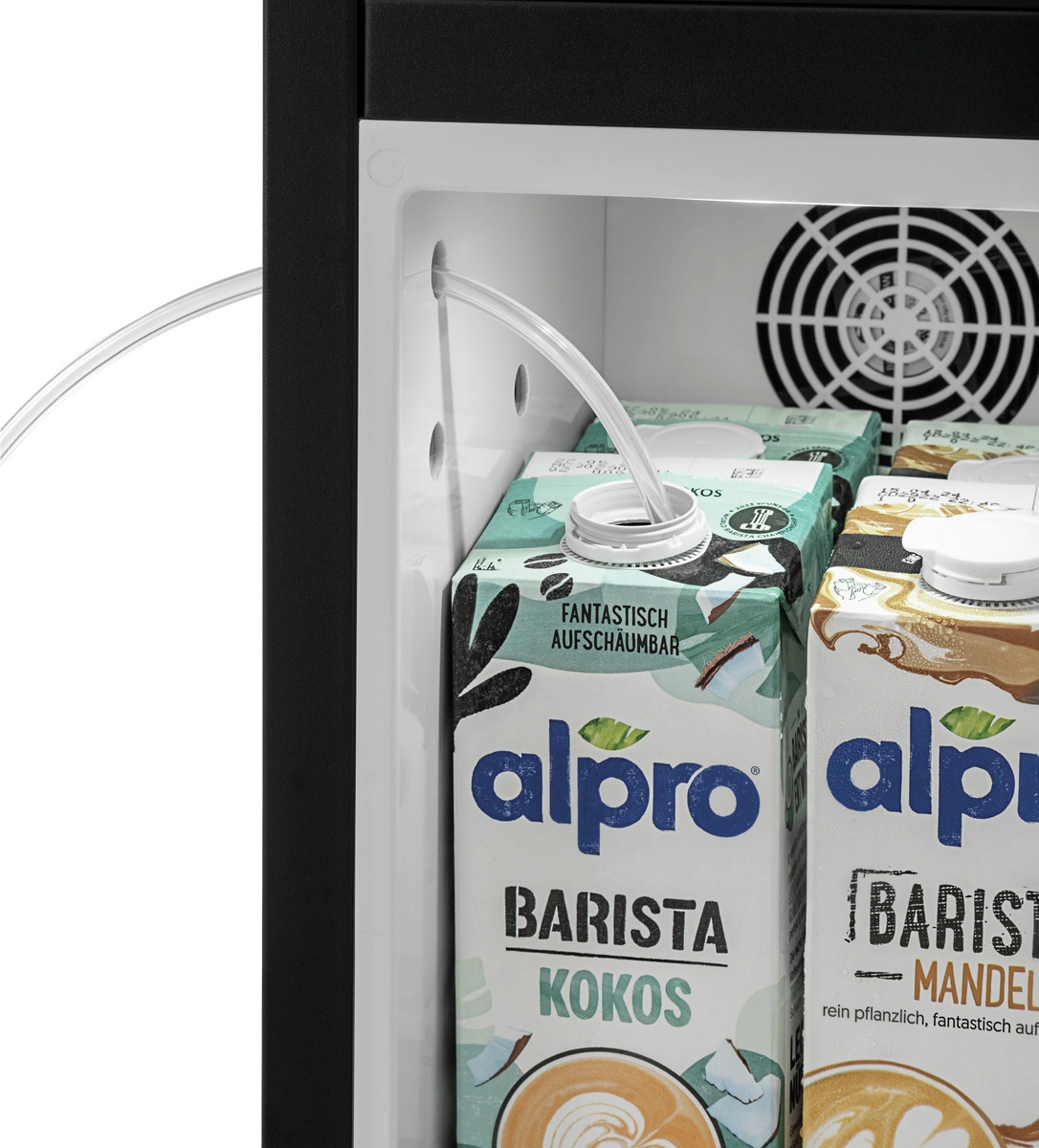Lodówka KV9L zapewnia wygodę obsługi, świeżość mleka oraz elegancki, nowoczesny wygląd, idealnie komponujący się z wyposażeniem każdego profesjonalnego punktu gastronomicznego.