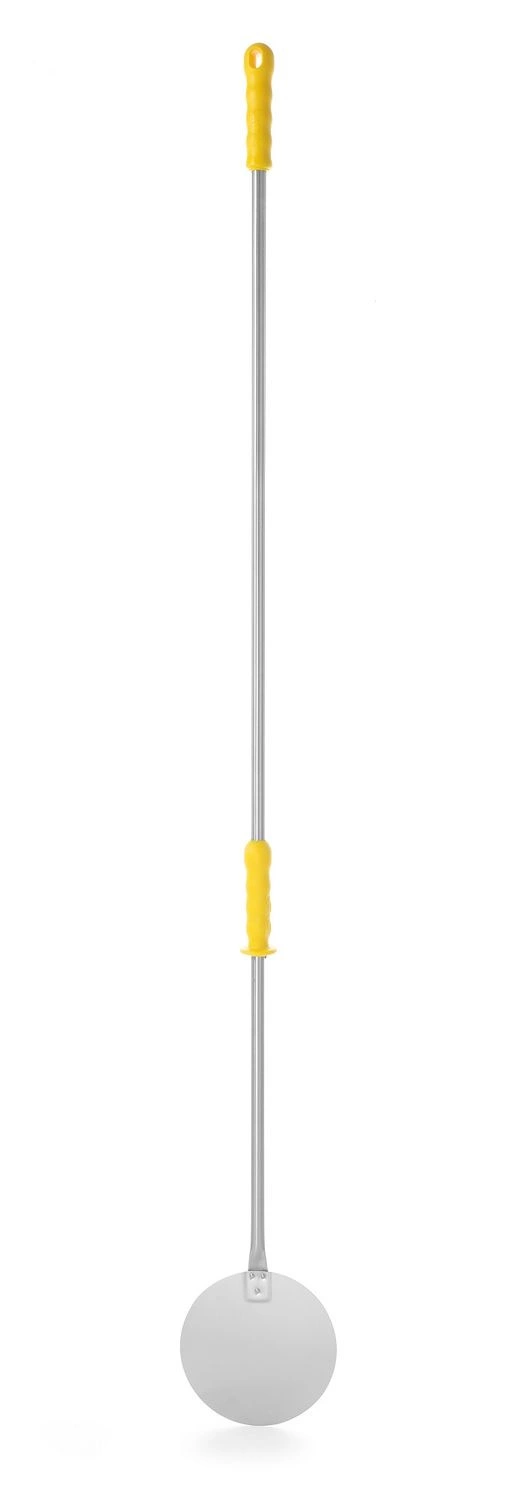 Łopata do obracania pizzy wykonana ze stali nierdzewnej. Ruchomy uchwyt wykonany z tworzywa. Średnica 20 cm.