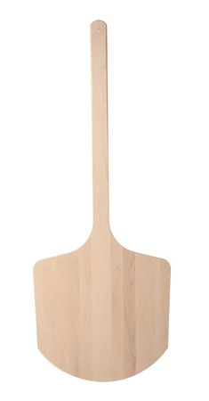 Łopata do pizzy o długości 110 cm. Wykonana z klejonego drewna bukowego. Zaostrzona końcówka łopaty dla łatwego nakładania ciasta. Uchwyt z dziurką pozwalający na zawieszenie łopaty.