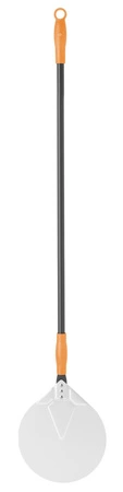 Łopata do pizzy o wymiarach 23x120 cm. Wykonana z anodowanego aluminium, okrągła. Lekka i wytrzymała. Rękojeść z uchwytem suwakowym ułatwia wyjmowanie pizzy z pieca.
