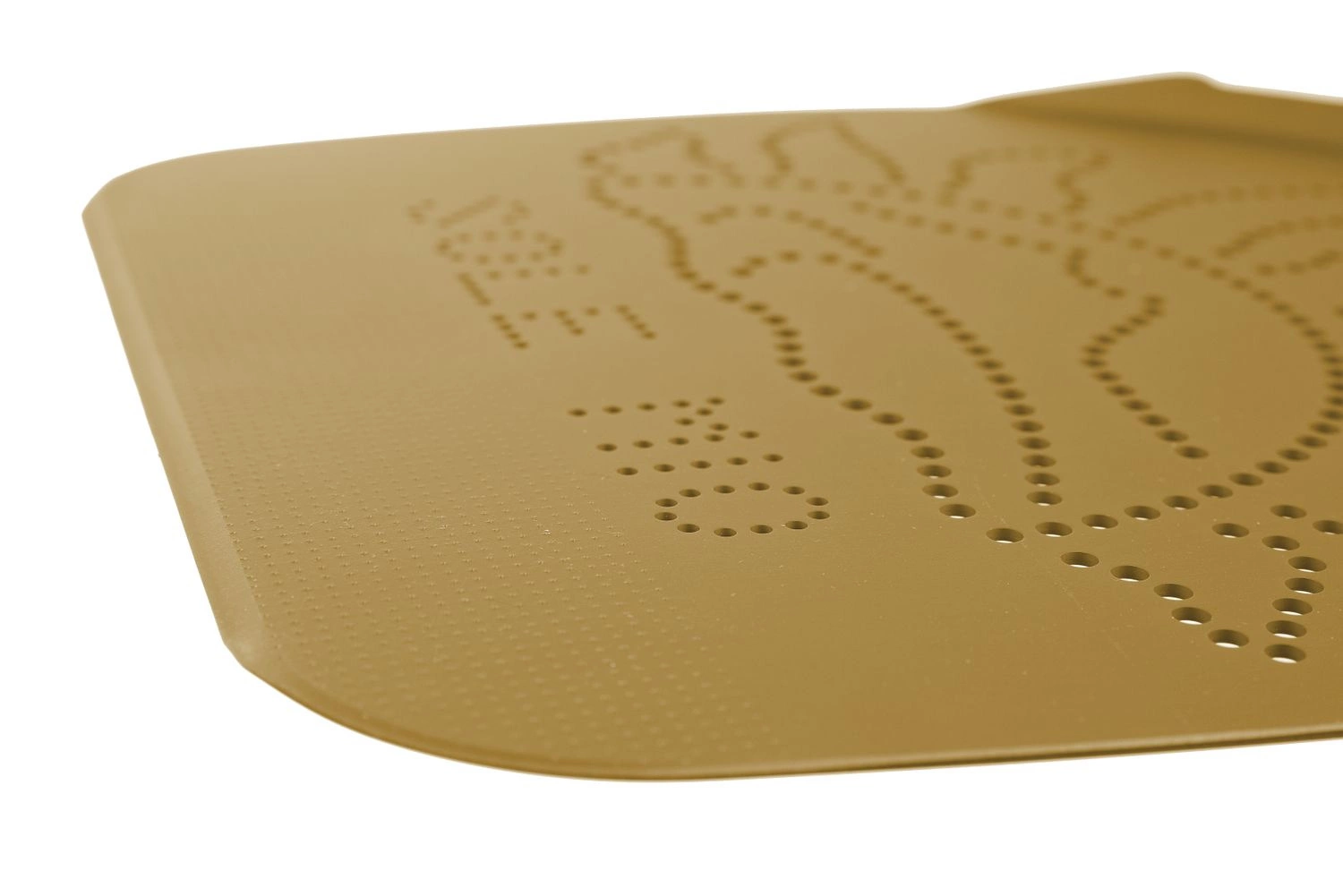 Łopata do pizzy Sole Mio. Wykonana z anodowanego aluminium. Lekka i wytrzymała. Posiada otwory umożliwiające usuwanie nadmiaru mąki. Zaostrzony brzeg i mikroperforacja powierzchni pomaga w podważaniu i nabieraniu pizzy. Kolor żółty.