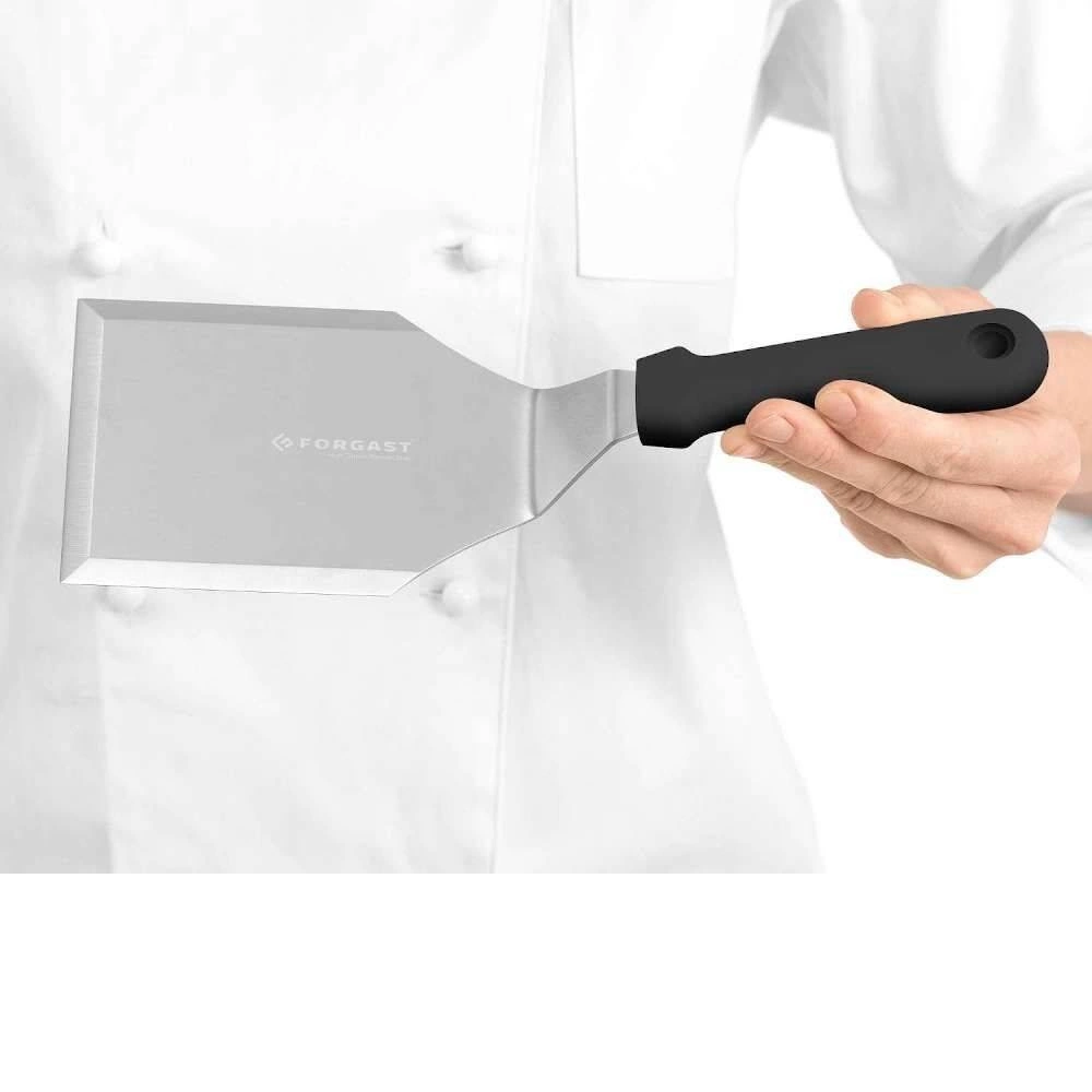 Łopatka do hamburgerów FORGAST FG11221 sprawdzi się zarówno w lokalach gastronomicznych, food truckach, jak i w domowych warunkach podczas spotkań przy grillu. Jej szeroka powierzchnia robocza pozwala na szybkie przewracanie burgerów, steków, ryb czy warzyw. Wytrzymała konstrukcja zapewnia bezpieczeństwo użytkowania nawet przy wysokich temperaturach, a ergonomiczna rączka minimalizuje ryzyko oparzeń i zmęczenia dłoni podczas dłuższej pracy.