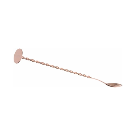 Łyżka barmańska z muddlerem kolor miedziany, wykonana ze stali nierdzewnej.