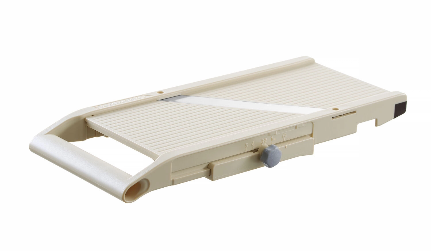 Mandolina japońska SHŌGUN PRO została zaprojektowana z myślą o wydajności i precyzji. Szeroka powierzchnia tnąca pozwala na szybkie przygotowanie dużych ilości składników, co docenią zarówno kucharze profesjonalni, jak i pasjonaci gotowania w domu. Wbudowane płaskie ostrze umożliwia uzyskanie bardzo cienkich, jednakowych plastrów, a płynna regulacja grubości pozwala na dostosowanie efektu do różnych zastosowań kulinarnych – od surówek po dekoracyjne kompozycje na talerzu. Dzięki ergonomicznemu kształtowi i dobrze wyważonej konstrukcji urządzenie jest niezwykle wygodne w obsłudze, a dodatkowa osłona na palce zwiększa bezpieczeństwo nawet podczas intensywnej pracy.