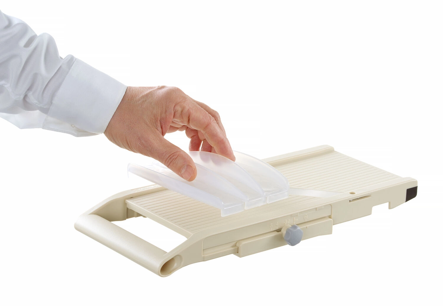 • Bezpieczeństwo pracy – W zestawie znajduje się osłona na palce/holder z polipropylenu, który chroni dłonie podczas krojenia, zwiększając komfort użytkowania nawet przy intensywnej eksploatacji.