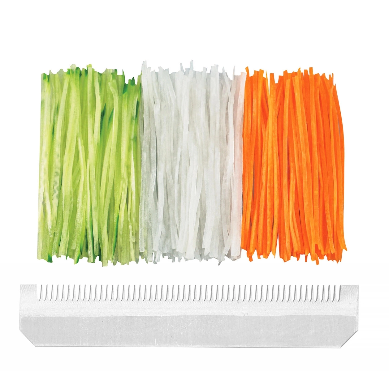 • Szerokość cięcia: do 108 mm – Pozwala na szatkowanie szerokich składników, takich jak kapusta czy bakłażan.
