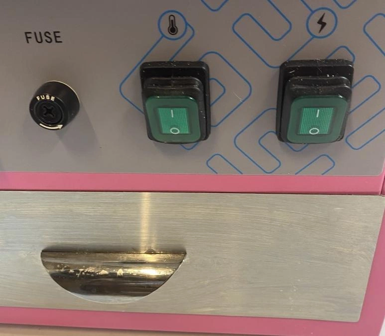 - Łatwa obsługa – Dwa intuicyjne przyciski umożliwiają sterowanie grzaniem oraz obrotami głowicy, co zapewnia pełną kontrolę nad przygotowywaniem waty cukrowej.