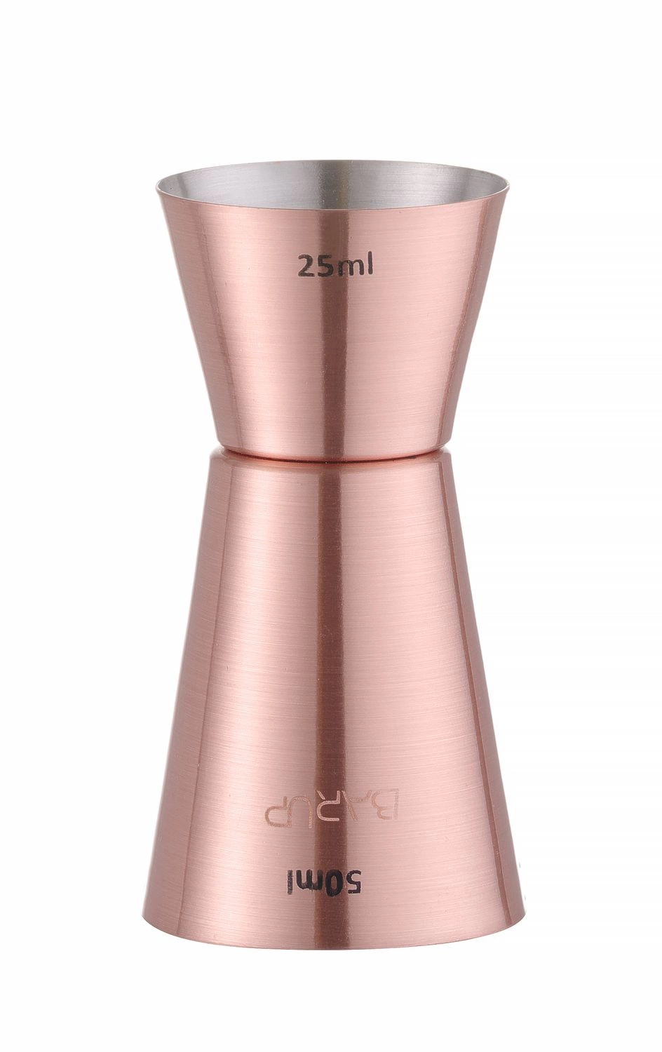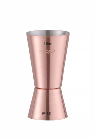 Pozwala uniknąć przelania i zapewnia perfekcyjnie wyważony smak drinków. Wykonany ze stali nierdzewnej z powłoką w kolorze miedzianym z błyszczącym wykończeniem. Miarka dwustronna: 25/50 ml.