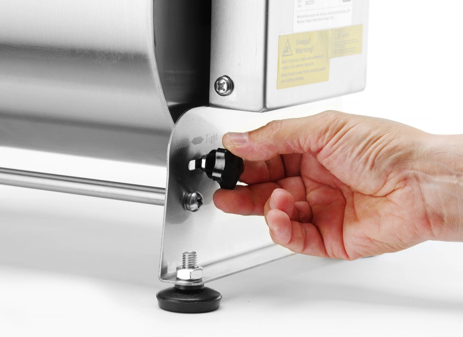 • Wydajna praca dzięki specjalnej przekładni – trzy obroty korbki odpowiadają jednemu obrotowi mieszadła, co pozwala na efektywne mieszanie nawet większych wsadów mięsa bez dużego wysiłku.