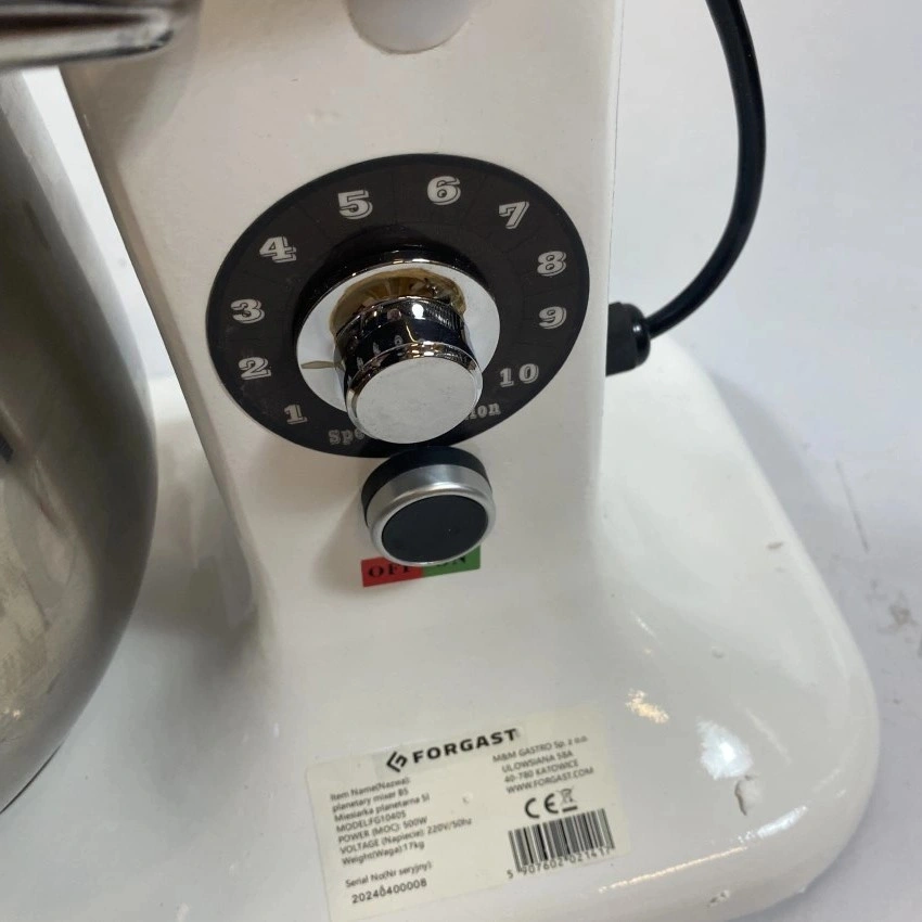 Mikser planetarny FORGAST FG10405/E4 to profesjonalne urządzenie przeznaczone do przygotowywania lekkich ciast oraz ubijania piany w warunkach gastronomicznych. Charakteryzuje się kompaktową budową oraz wyjmowaną dzieżą o pojemności 5 litrów, co sprawia, że doskonale sprawdzi się zarówno w małych piekarniach, cukierniach, jak i w restauracjach czy hotelowych kuchniach. Model ten to sprzęt ekspozycyjny, który posiada niewielkie ślady użytkowania, jednak nie wpływają one na jego funkcjonalność.