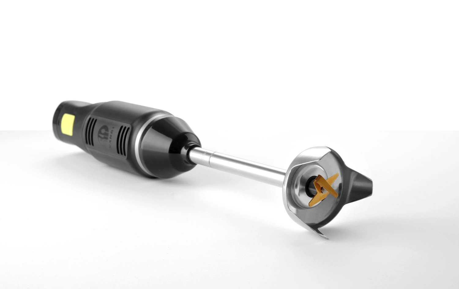Mikser ręczny o maksymalnej prędkości 16000 obr./min. Obudowa wykonana z tworzywa ABS, ramię ze stali nierdzewnej. Krzyżowe ostrze ze stali nierdzewnej z tytanem. Wydajny silnik o mocy 250 W. Mikser posiada elektroniczny panel sterowania z wyświetlaczem LED - 6 prędkości. Odpowiedni do naczyń o pojemności od 1 do 4 litrów.