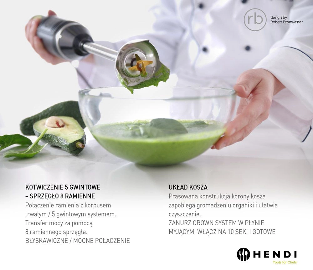 • Wyposażenie: końcówka miksująca – umożliwia uniwersalne zastosowanie w kuchni profesjonalnej.