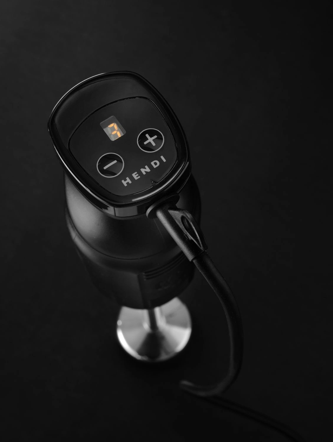 Obudowa miksera wykonana została z wytrzymałego tworzywa ABS, co zapewnia odporność na uszkodzenia mechaniczne oraz łatwość utrzymania w czystości. Ramię oraz ostrze z wysokiej jakości stali nierdzewnej, dodatkowo pokryte tytanem, pozwalają na długotrwałe użytkowanie nawet przy intensywnej eksploatacji. Elektroniczny panel sterowania oraz wyświetlacz LED oferują intuicyjną obsługę, a szeroki zakres regulacji prędkości umożliwia precyzyjne dopasowanie parametrów pracy miksera do każdego zadania kuchennego.