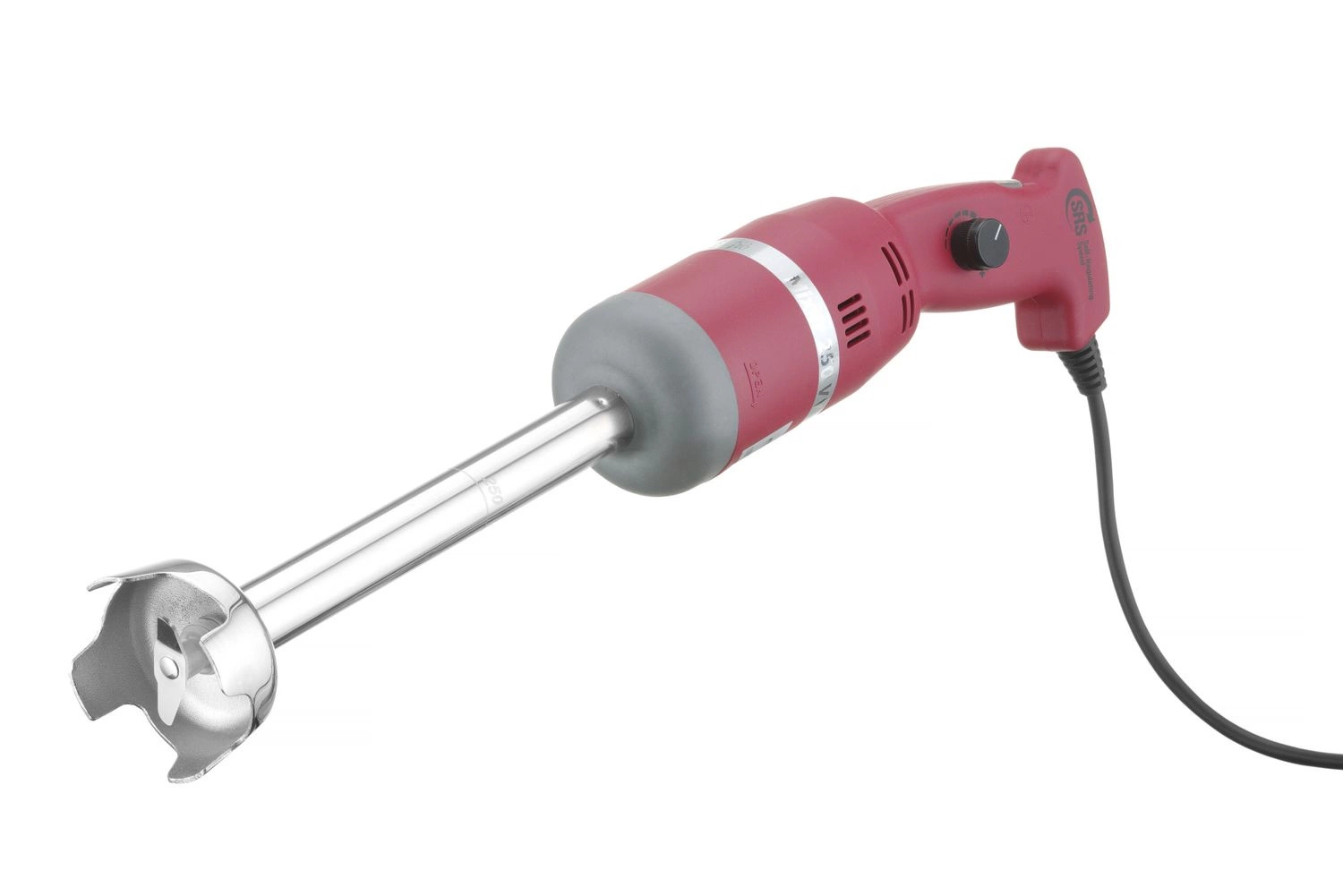 Mikser ręczny do miksowania potraw w garnkach bez konieczności przekładania zawartości. Ramię miksujące o długości 25 cm.  Odpowiedni do naczyń o pojemności do 20 l.Regulowana prędkość obrotów w zakresie od 2500 do 15 000 obr./min.