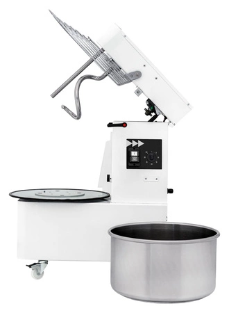 Miesiarka spiralna z wyjmowaną dzieżą marki Prismafood idealna dla pizzerii, cukierni, piekarni. Obudowa z wysokiej jakości stali lakierowanej na biało. Dzieża o pojemności 32 l, pokrywa bezpieczeństwa, spirala ze stali nierdzewnej 18/10. Unoszona głowica i wyjmowana dzieża. Mikrowyłącznik pokrywy bezpieczeństwa. Cicha praca przekładni olejowej. Timer i bezpieczny wyłącznik dwustopniowy. W wyposażeniu 4 kółka, w tym 2 z hamulcami. Wydajnośc urządzenia wynosi 88 kg/h.